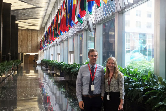 Photo: Austin and a fellow intern in the lobby of the State Department.